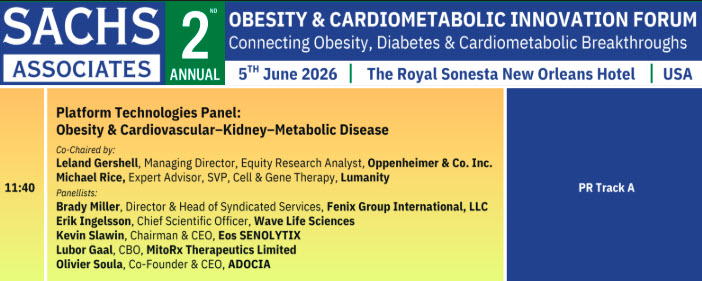 Platform Technologies Panel: Obesity & Cardiovascular-Kidney-Metabolic Disease Kevin Slawin, M.D., Founder and CEO Eos SENOLYTIX Dr. Slawin will also give a 20-minute presentation in Track B that begins at 1:45...